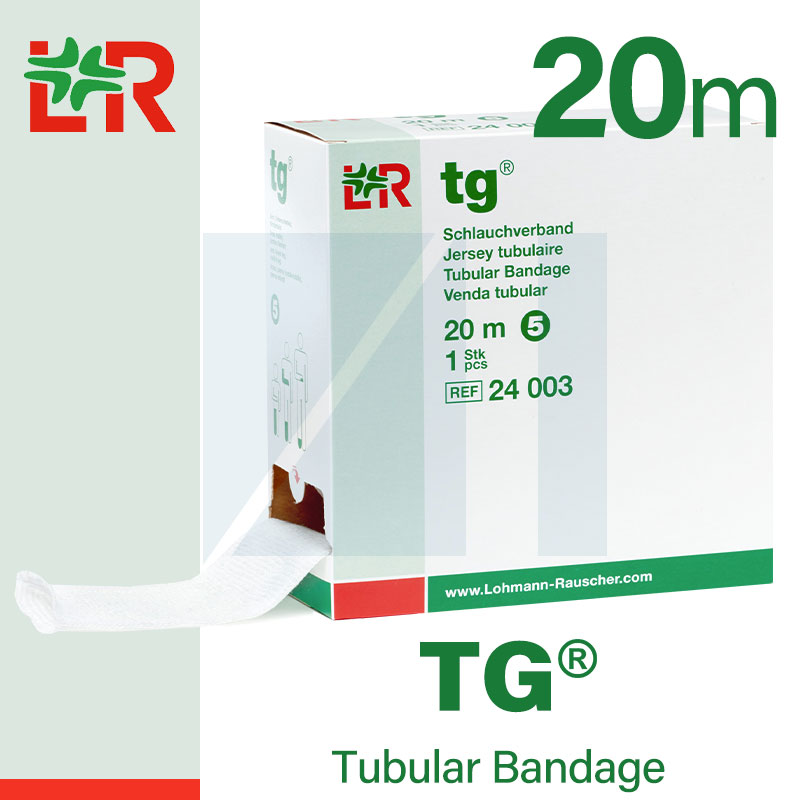 TG® Tubylar Bandage/Ти-Джей Тубуляр Бандаж эластичный трубчатый бесшовный бинт от компании Lohmann & Rauscher (L&R)/ Ломанн и Раушер длиной 20 метров предназначена для многоразовой фиксации повязок и защиты кожи на протяжённых участках тела, таких как конечности или туловище, в условиях требующих частой замены перевязочного материала. 5-метровая версия рассчитана на краткосрочное применение или фиксацию на небольших участках (пальцы, кисти, стопы)