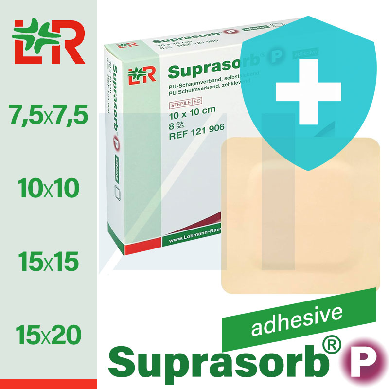 Suprasorb®P Adhesive/ Супрасорб П защитная стерильная пенополиуретановая самоклеющаяся повязка для ран от компании Lohmann & Rauscher (L&R)/ Ломанн и Раушер; Все размеры; 5-10 шт/уп