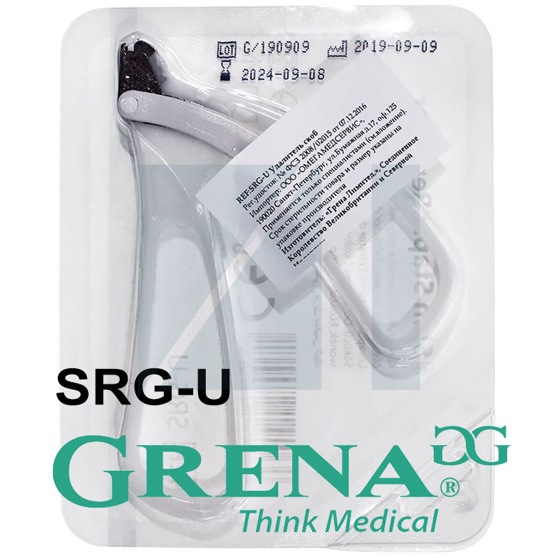 Хирургический инструмент антистеплер (экстрактор) SRG-U преназначен для снятия швов и удаления стандартных, широких и высоких кожных скоб, наложенных сшивающим аппаратом (степлером) серии SSG компании Grena/ Грена. Для снижения риска передачи внутрибольничных инфекций экстрактор изготавливают одноразовым. Поставляется в индивидуальной стерильной упаковке.
